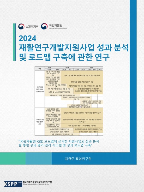 재활연구개발지원사업 성과분석 및 로드맵 구축에 관한 연구 관련링크 페이지 정보 작성일26-03-04 16:19 조회733회 본문 국립재활원 R&D 성과체계 및 성과로드맵 구축 이전글 다음글 목록